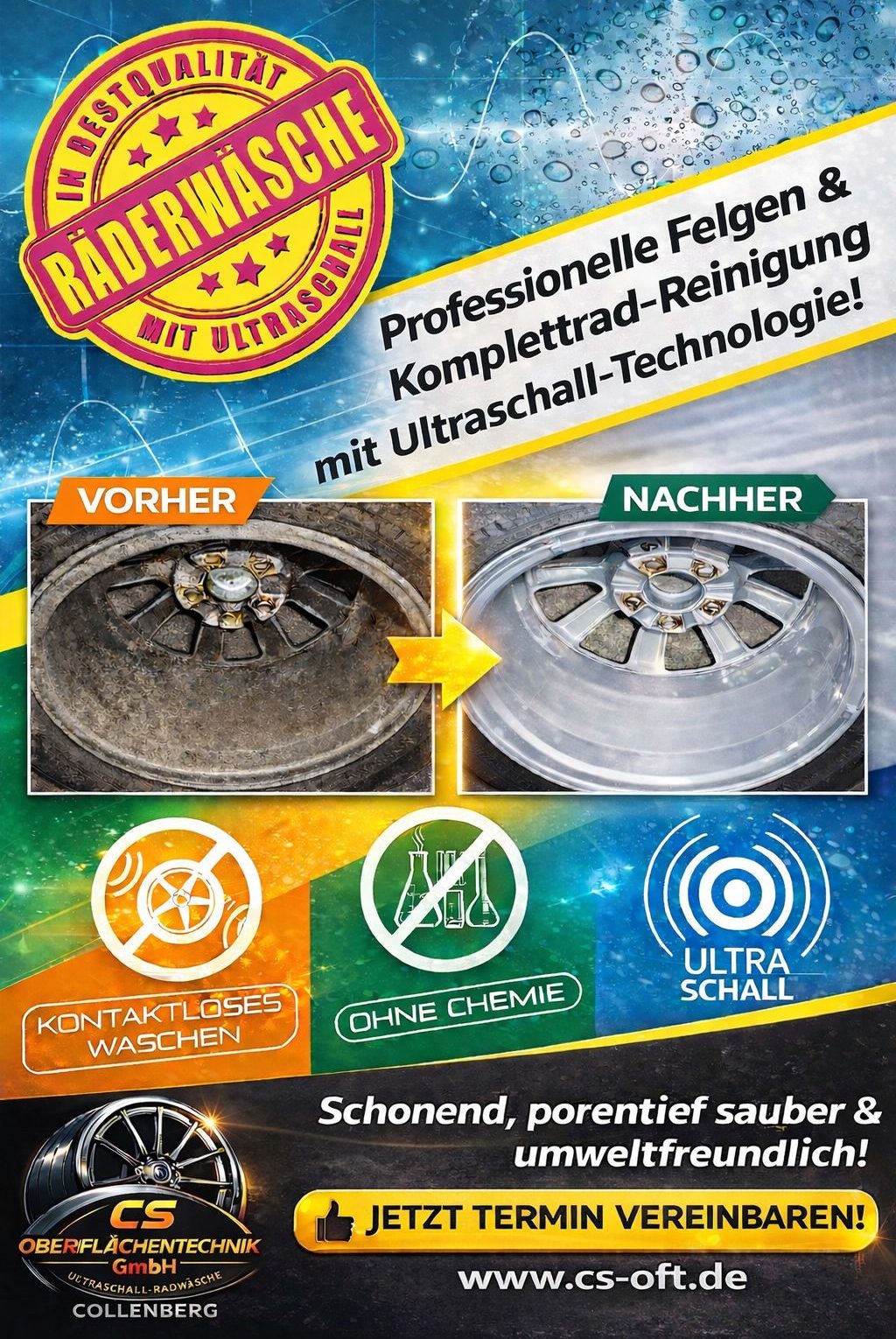 Gönnen Sie Ihren Felgen die innovative Ultraschall-Radwäsche und lassen sich vom perfekten Waschergebnis überzeugen –umweltfreundlich, nachhaltig und effizient.